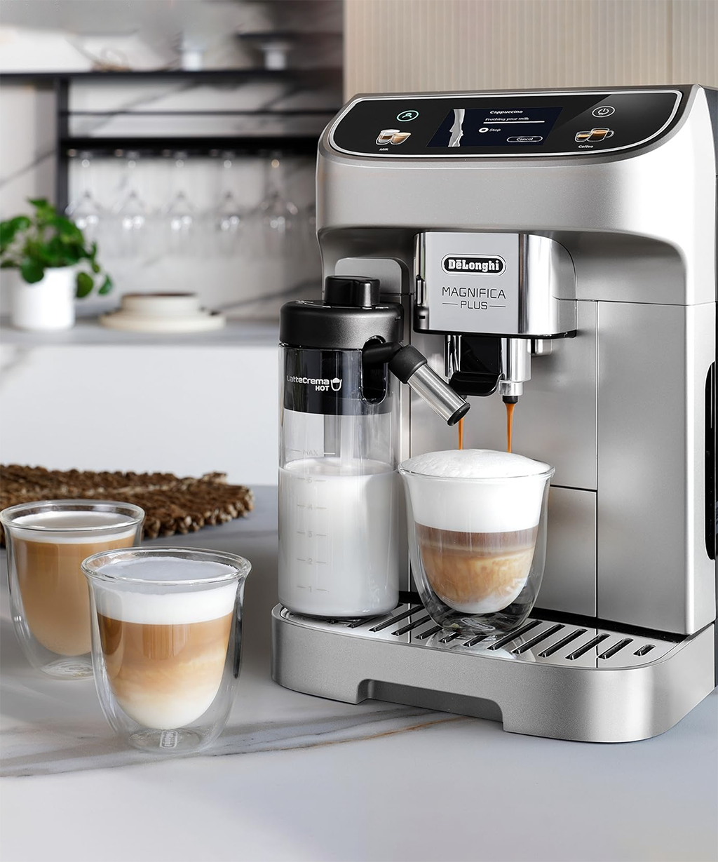 De’Longhi Magnifica Evo Next Fully Automatic Espresso Machine – Programmable Coffee Maker with Grinder and Milk Frother – Hot & Cold Brewer for Espresso, Latte, Cappuccino, Americano, Tea and More(Plus Silver)