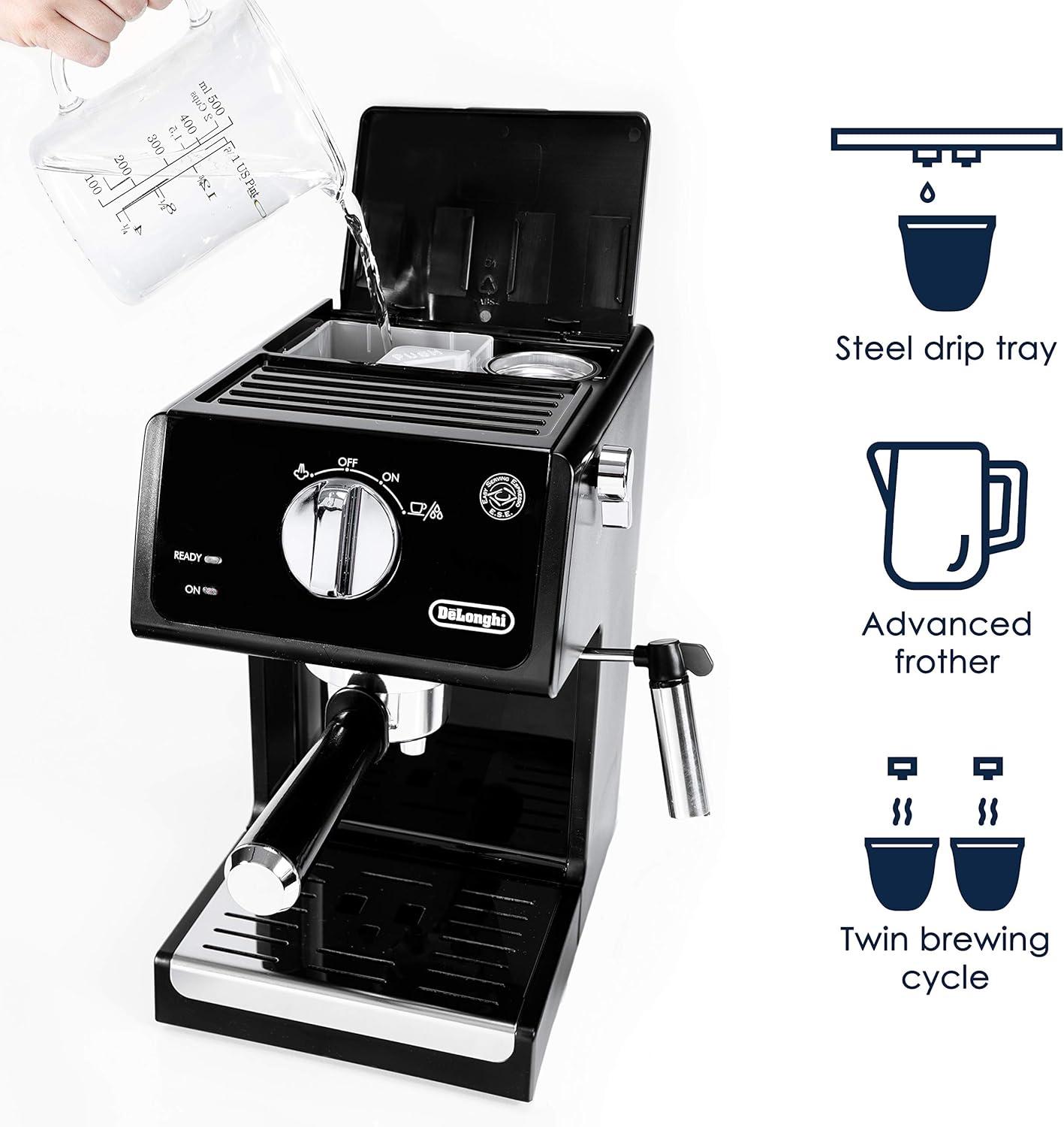 De’Longhi 15-Bar Pump Espresso Machine with Milk Frother & Temperature Control – Compact Home Barista Coffee Maker for Espresso, Latte, Cappuccino & Iced Coffee, Easy to Clean Design(Black)