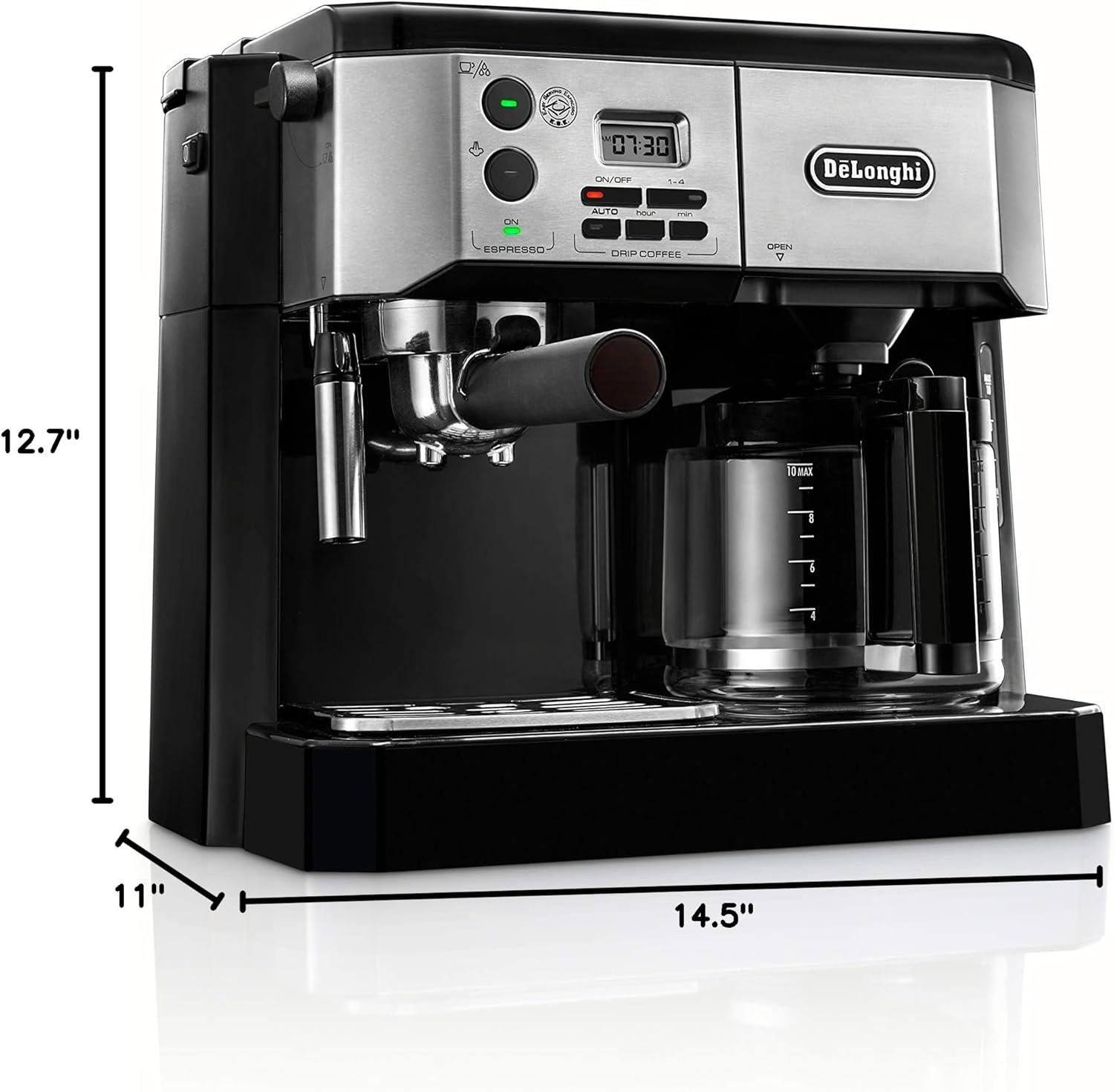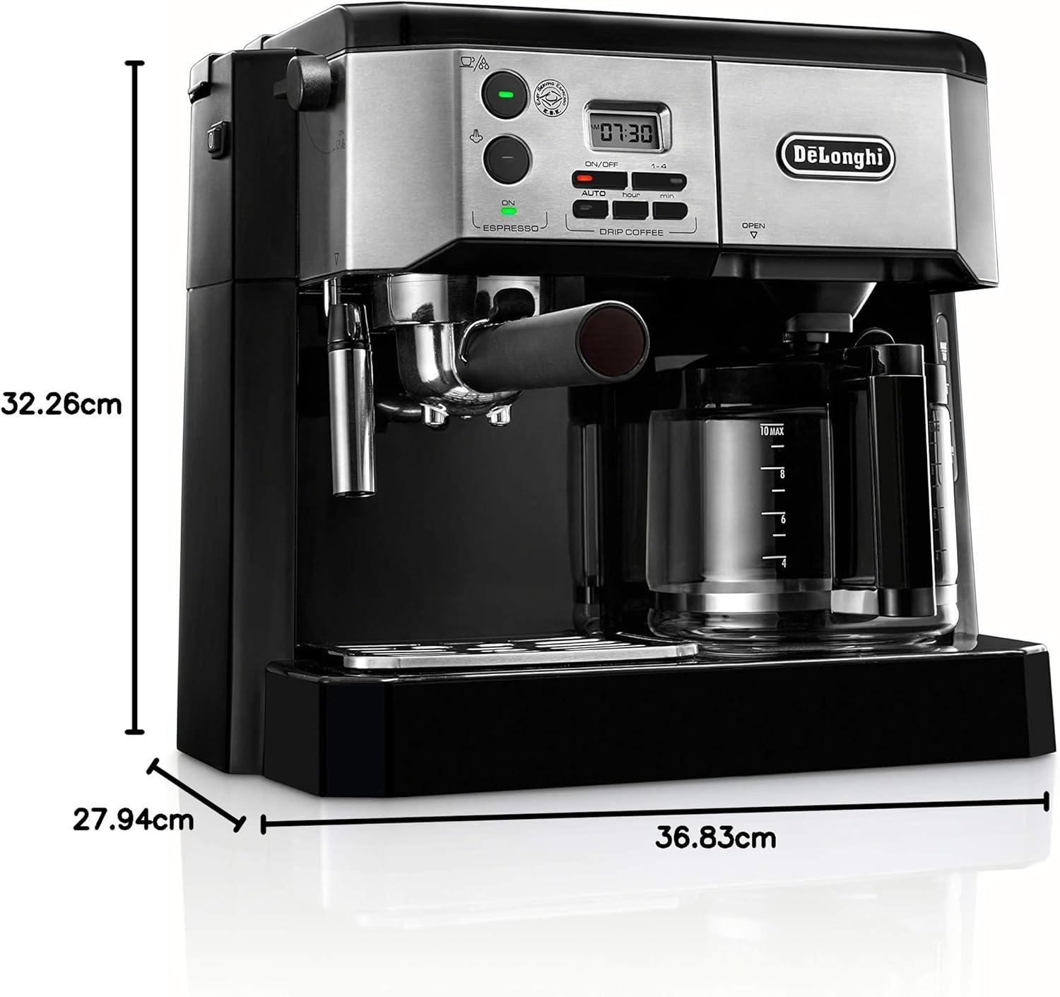 De’Longhi BCO430BM All-in-One Combination Maker & Espresso Machine + Advanced Milk Frother for Cappuccino, Latte & Macchiato + Glass Coffee Pot 10-Cup(Silver-Black)