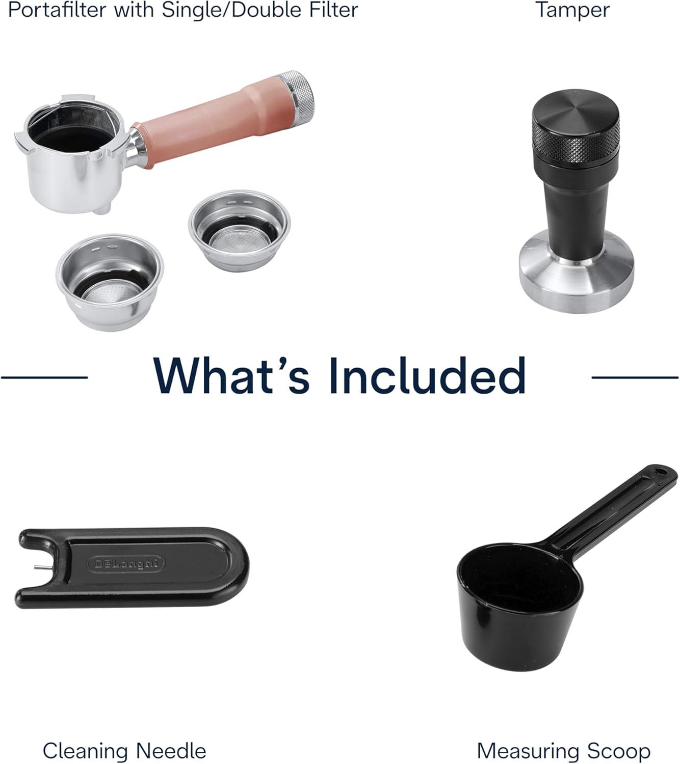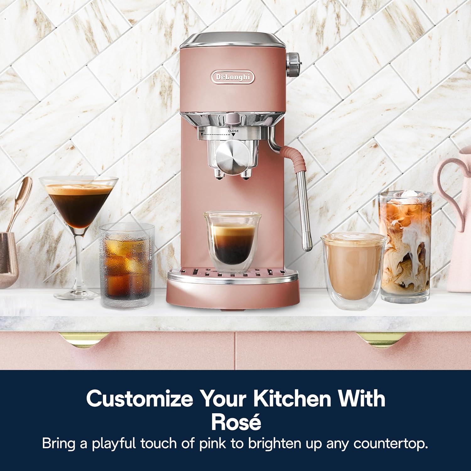 De’Longhi Dedica Duo Compact Espresso Machine – Cold Brew Coffee Maker with Milk Frother Wand- for Espresso, Hot & Iced Coffee, Cappuccinos, Lattes & Home Barista Brewing, Stainless Steel Finish(Rosé Pink)