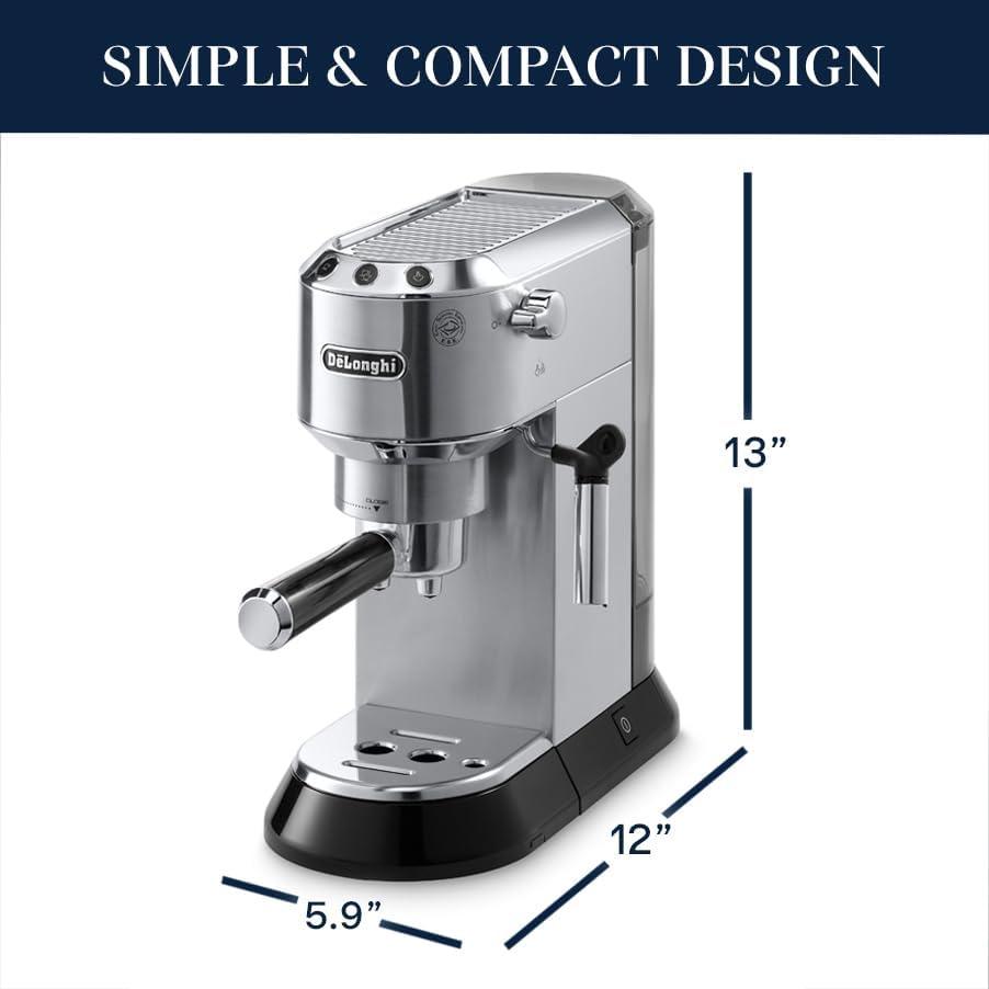 De’Longhi Dedica Espresso Machine with Manual Milk Frother, 15-Bar Pump & Adjustable Tray – Home Barista Coffee Maker for Espresso, Latte, Cappuccino & Iced Coffee – Italian Stainless Steel Design(Silver)