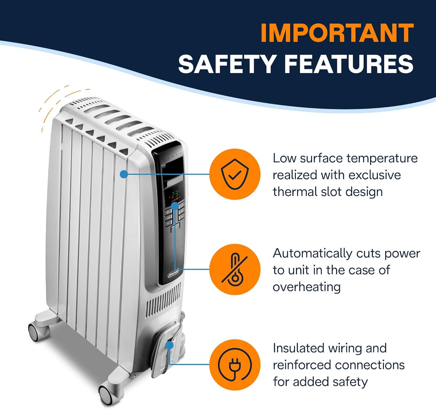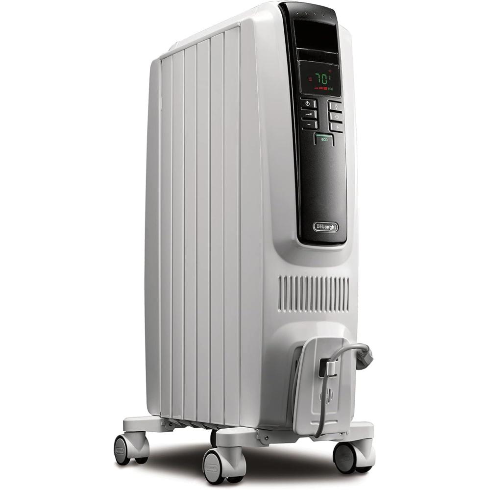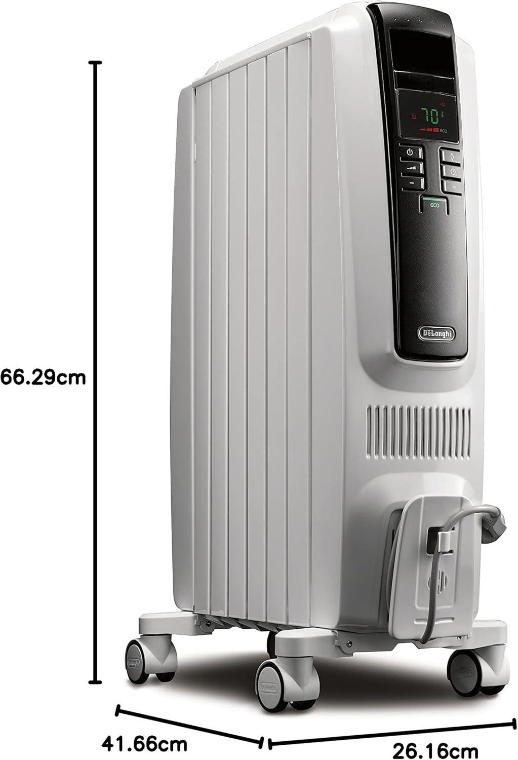 DeLonghi Dragon Digital Oil Filled Radiator Heater, 1500W Electric Space Heater for indoor use, programmable timer, Energy Saving, full room heater with safety features TRD40615EBK, 16″x10″x26″, Black(White)