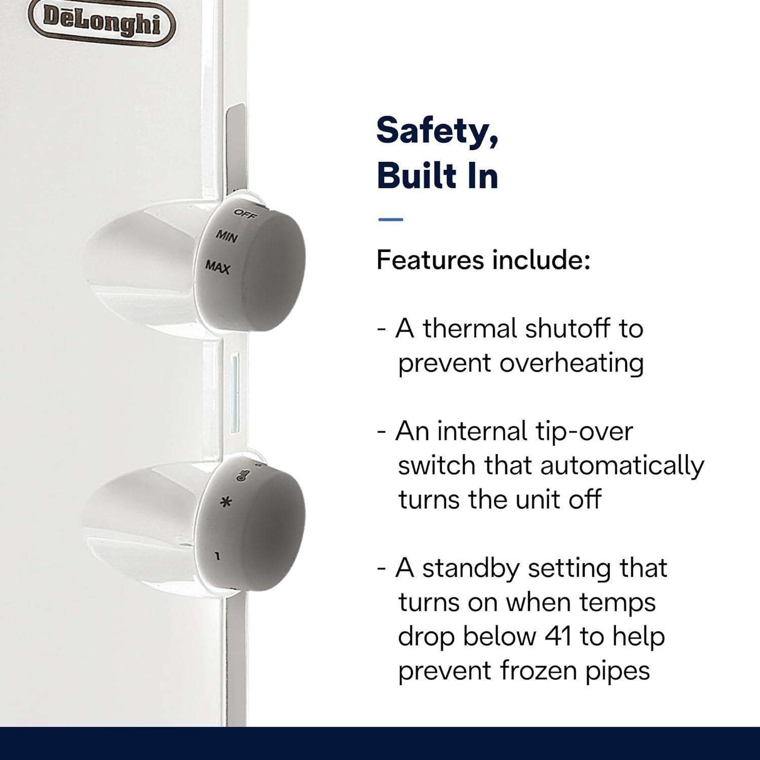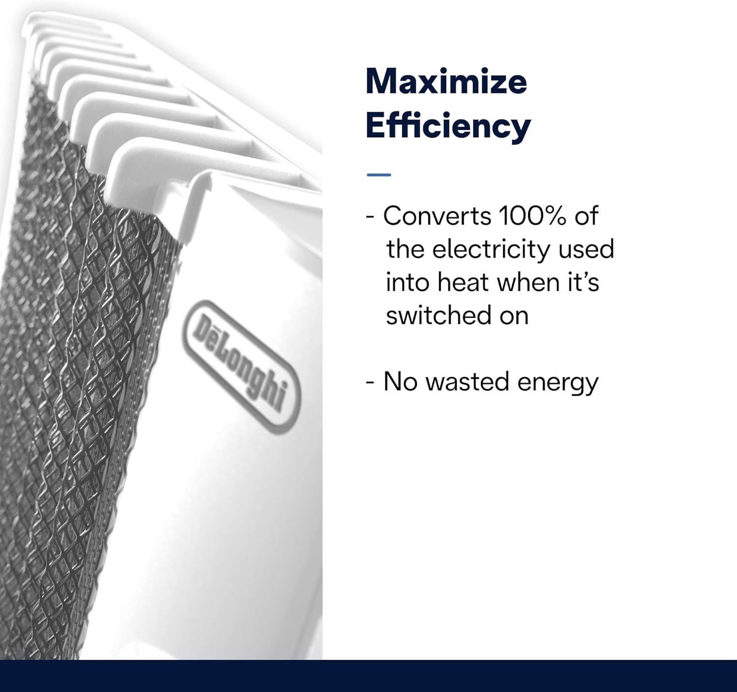 MAXIMIZE EFFICIENCY – This De’Longhi heater converts 100% of the electricity used into heat when it's switched on, with no wasted energy. That means it delivers continuous heat while raising the room temperature to your desired setting.