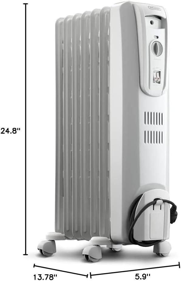 DeLonghi Oil Filled Radiant Heater, 1500W Electric Space Heater – Quiet and Portable with Anti-Freeze Function and Safety Features, TRH0715