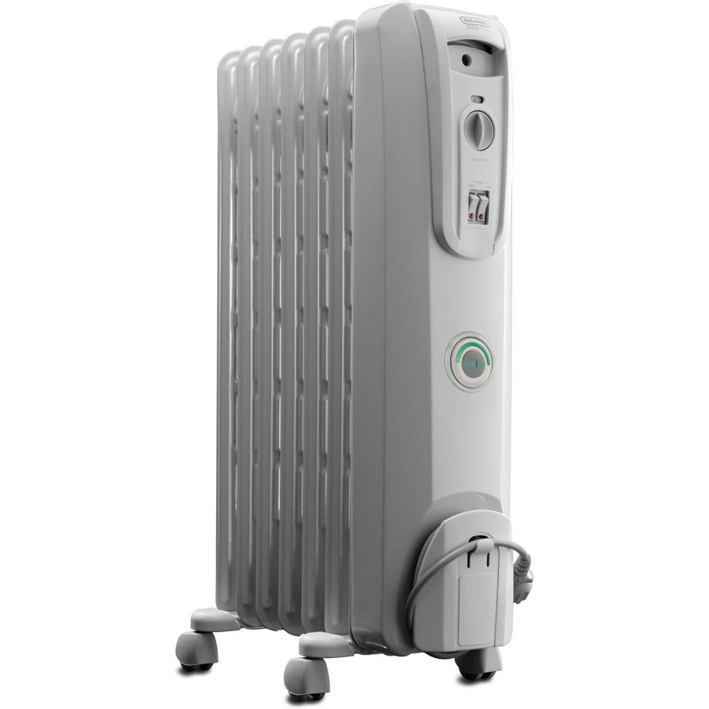 De’Longhi Oil filled Radiator Heater, 1500W Electric Space Heater for indoor use, portable room heater, Energy Saving, full room like office and bedroom with safety features, EW7707CB(White)