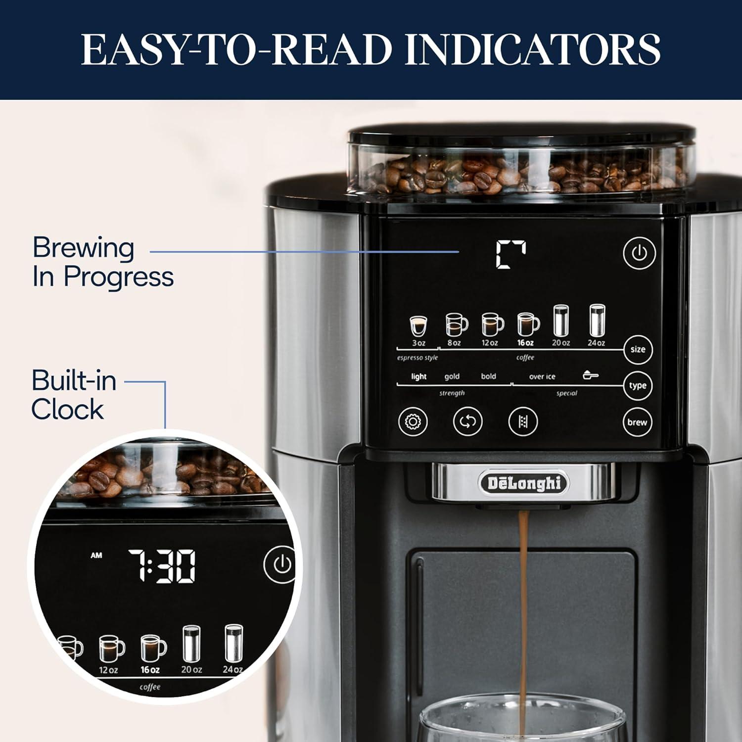 Bean Extract Technology: De'Longhi's proprietary Bean Extract Technology automatically grinds, doses, and brews each cup to perfection.