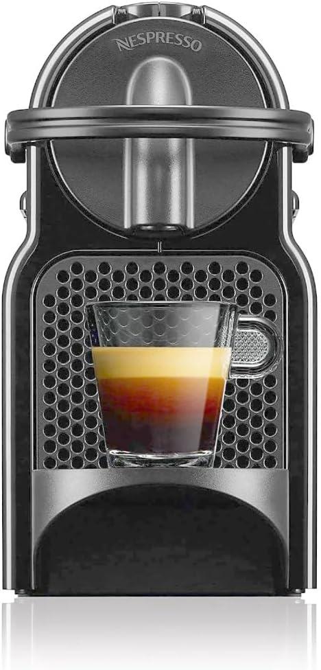 Indulge in a rich cup of coffeehouse-style Lungo or espresso with this Nespresso Inissia espresso machine from DeLong with a tiny footprint and compact, lightweight design, this smart little Coffee machine will make each morning a bit easier. Simply pop in a capsule, select one of the programmable buttons for Espresso or Lungo preparation, and brew. The fast, 25 second preheating time, combined with the high pressure pump, means you'll be sipping a delicious cup of Coffee in no time. With a used capsule container that holds up to 10 spent capsules and automatic power off feature that shuts down the machine After it's been sitting idle, there's less for you to worry about after brewing. The folding drip tray ensures you can use your favorite mug, glass, or travel tumbler, whether tall or short, and the automatic volume control feature ensures you'll always brew just the right amount. Even better, Nespresso's Aeroccino milk frother is included, allowing you to create light, creamy milk froth for cappuccinos, lattes, and more, all with just the press of a button. Backed by a manufacturer's one year , the Inissia includes a 16 Capsule tasting pack to get you started. 12-3/5″ L x 4-7/10″ W x 9″ H.