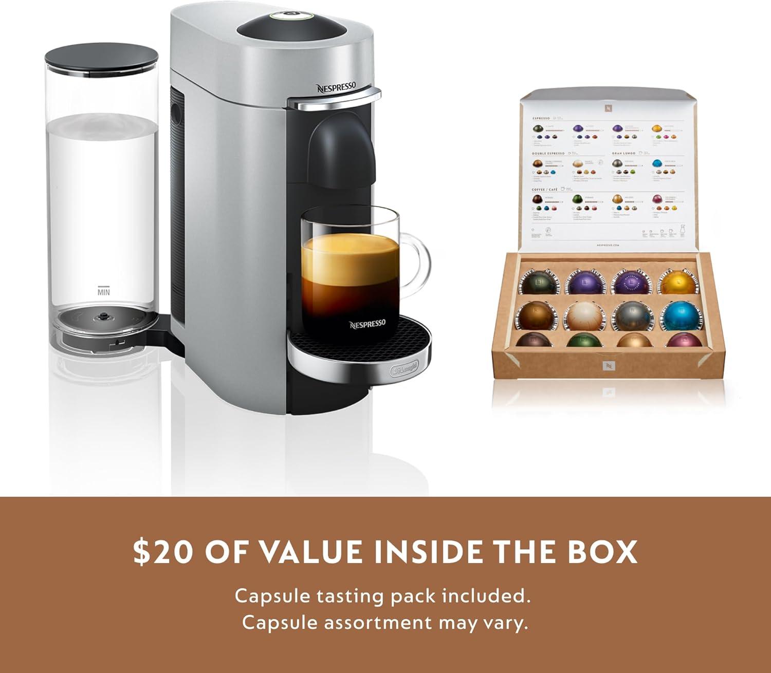 Nespresso Vertuo Plus Deluxe Coffee and Espresso Maker by De’Longhi, Titan with Aeroccino Milk Frother, 110 Volts(Titan)